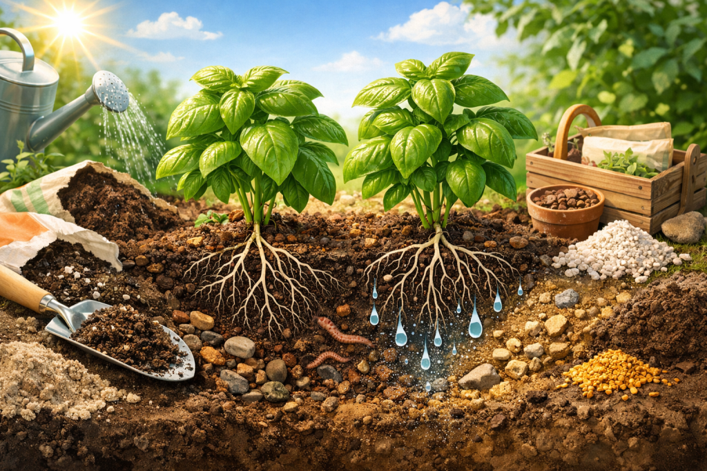 元気なバジルは、まずよい土から始まります。葉を見て育てる前に、根が安心できる場所をつくる。そのひと手間こそが、あとから大きな差になって返ってきます。